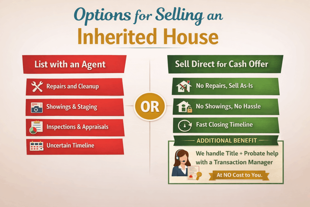 It depends on the situation, title, and the estate process, but a direct sale is typically much faster than listing, especially when repairs are needed.